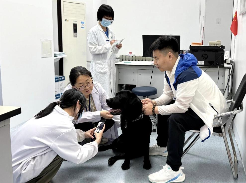工作人员为13只北京市在役导盲犬提供免费体检。受访者供图