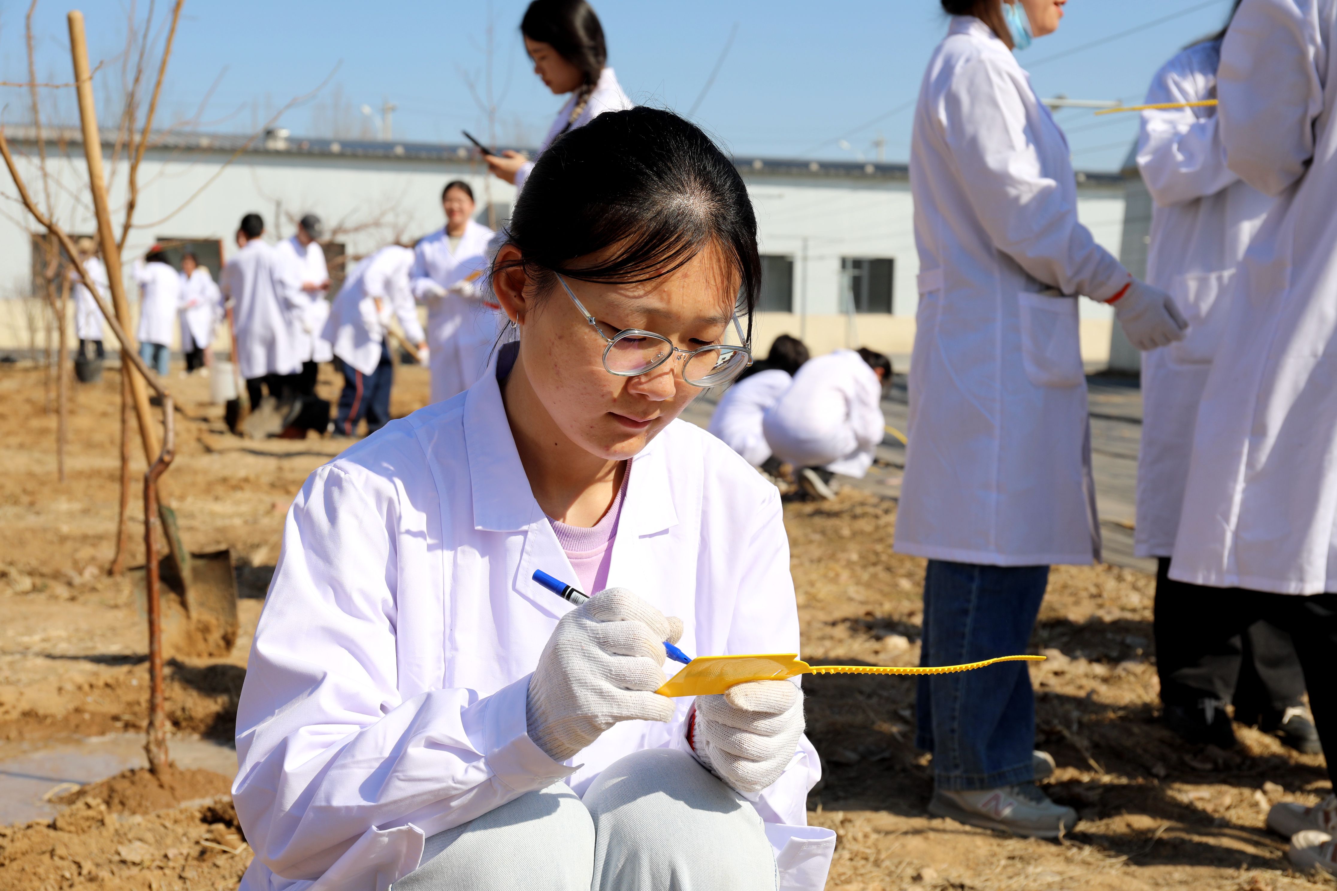 “春季果树种植有几个技术要点,大家一定要注意,一是要将果树苗木有病虫害的根系剪除,在定植前对根系进行消毒;二是定植后要浇足水,让土壤与根系充分接触,提高成活率。”春日的阳光洒在生机勃勃的校园中,同学们认真听老师讲解知识要点,不时记录着,生怕错过关键信息。