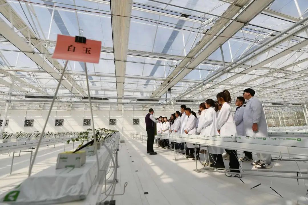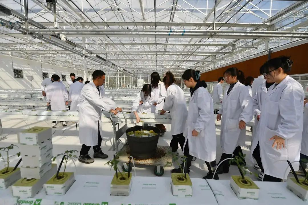 智能温室占地约3000平方米,集无土栽培、自动水肥管理、精准环境调控、实时数据监测等智慧功能于一体,一年四季作物常绿,满足beat365中文官方网站师生教学和科研需求。