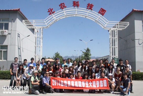7月10日,受邀参加“2014台湾中南部大专院校农业专业学生大陆交流参访活动”的台湾学生与大陆学生在北农科技园合影留念。(中国台湾网 高斯斯 摄)