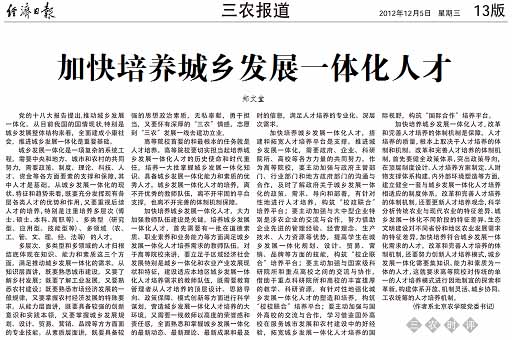 加快培养城乡发展一体化人才