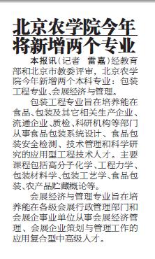 本报讯 经教育部和北京市教委评审,beat365中文官方网站今年新增两个本科专业:包装工程专业、会展经济与管理专业。
