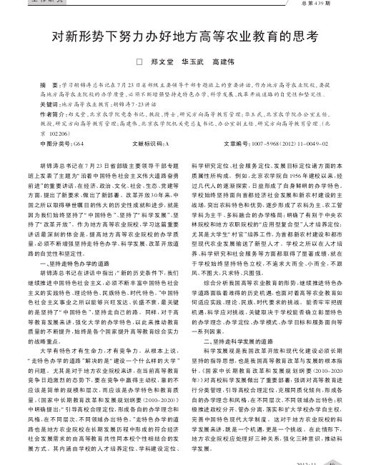 关键词:地方高等农业教育;胡锦涛7·23讲话