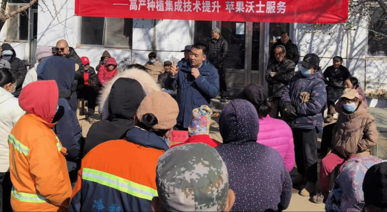 “咱们的果园存在一定的土壤酸化问题,这有点像人得了慢性病,需要‘慢慢调养’,建议大家优化肥料种类、施肥方式、施肥时间,合理配施土壤改良剂来促进苹果提质增效。”石生伟老师向果农细细介绍改良方案。