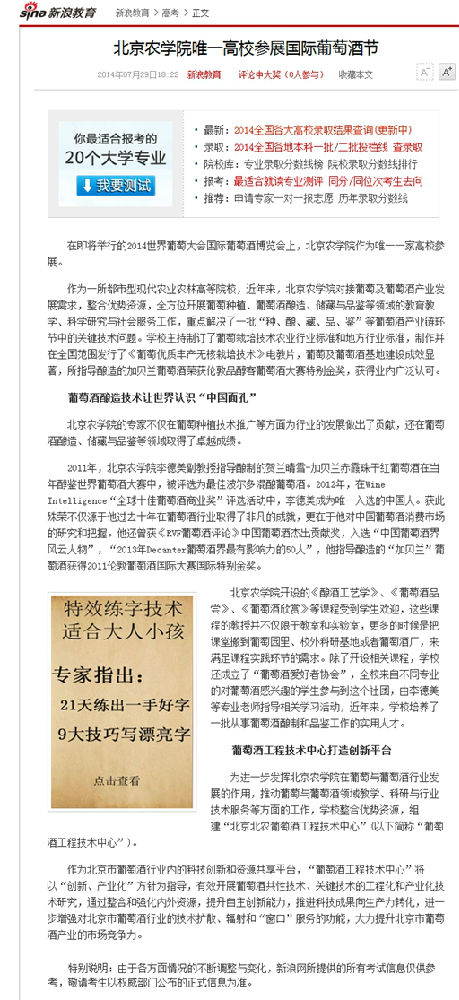 在即将举行的2014世界葡萄大会国际葡萄酒博览会上,beat365中文官方网站作为唯一一家高校参展。