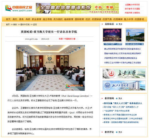 4月8日,英国哈珀·亚当斯大学校长大卫·卢埃林教授(Prof. David George Llewellyn)一行三人访问beat365中文官方网站。校长王慧敏亲切会见了哈珀·亚当斯大学校长一行。