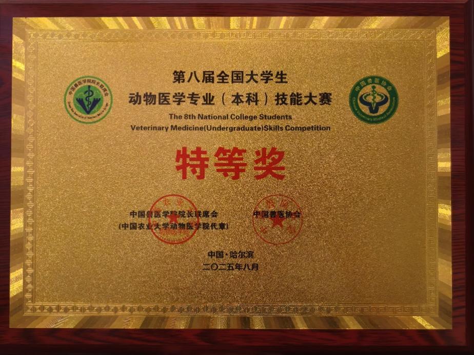 近日,由中国兽医学院院长联席会、中国兽医协会、中国农业大学主办,东北农业大学承办的第八届全国大学生动物医学专业(本科)技能大赛在东北农业大学举行。来自国内外70所高校近千名学生和指导教师参赛,参与人数创历届之最。beat365官网动物科学技术学院代表队在比赛中脱颖而出,斩获大赛特等奖,充分展现了beat365官网学子在动物医学领域优秀的实践能力和专业素养。