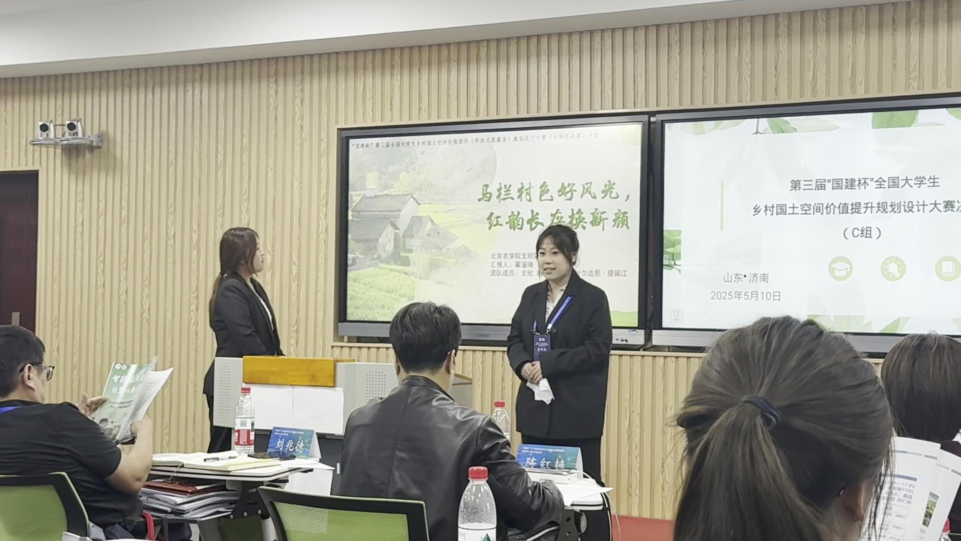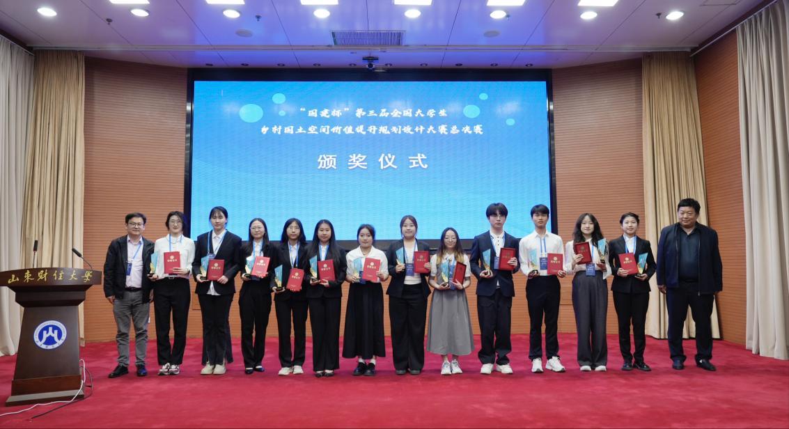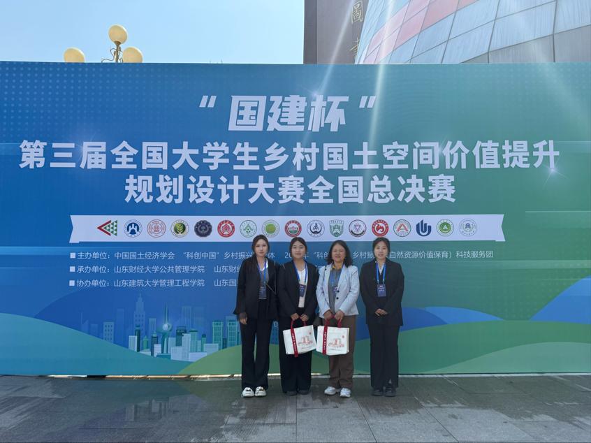 近日,由中国国土经济学会、"科创中国"乡村振兴联合体、2024年度"科创中国"乡村振兴(自然资源价值保育)科技服务团主办,山东财经大学承办的“国建杯”第三届全国大学生乡村国土空间价值提升规划设计大赛(全国总决赛)在济南举办。beat365中文官方网站生物与资源环境学院农业资源与环境专业本科生支欣、翟溢琦、胡瑾、丁骁宇、叶尔达那.提留江组成的代表队,凭借参赛作品《马栏村色好风光,红韵长存换新颜》(指导教师:刘云、石生伟、谷薇、梁琼)在全国总决赛中荣获特等奖,刘云老师荣获优秀指导老师奖。