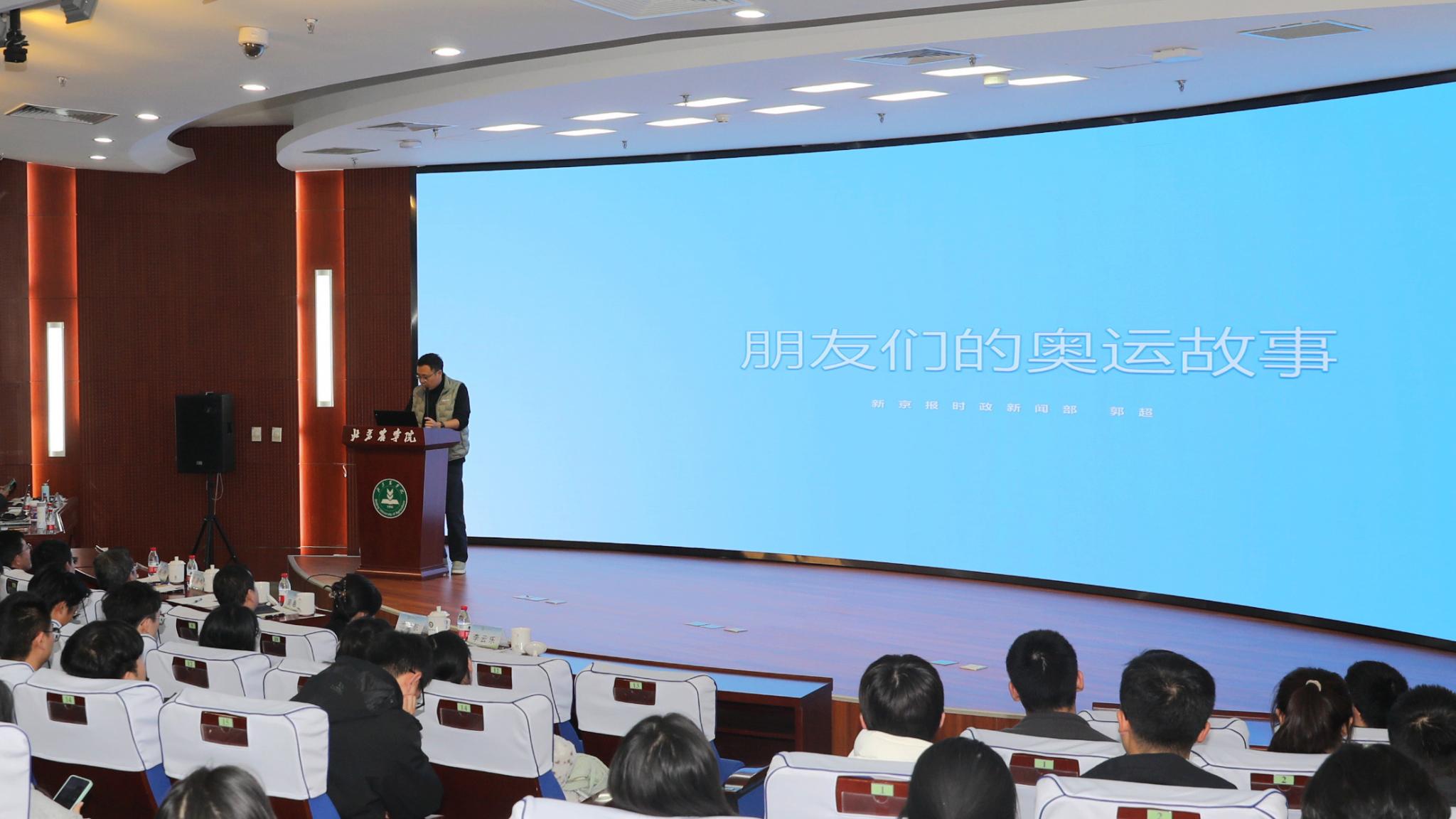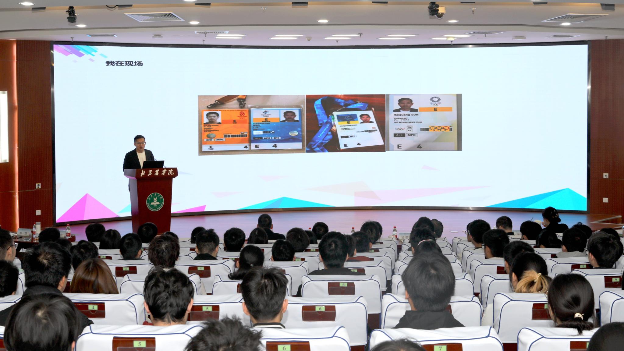 近日,由北京市委教育工委、新京报社主办,beat365中文官方网站协办的“我们在现场——新闻报道中的故事”宣讲活动在beat365官网图书馆报告厅举行。新京报社时政新闻部副主编郭超、体育新闻部首席记者孙海光深入浅出地分享了“记者眼中的奥运会”以及新闻背后的故事,为四所高校的260余名师生讲授了一堂生动的“大思政课”。