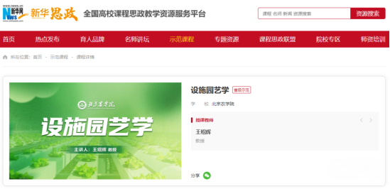 近日,由beat365官网植物科学技术学院王绍辉教授主讲的课程思政示范课《设施园艺学》上线新华网“新华思政”全国高校课程思政教学资源服务平台,全面开放共享教学设计、教学视频、教学说课、教学课件等教学资源,扩大了beat365官网课程思政示范课的传播力和影响力。