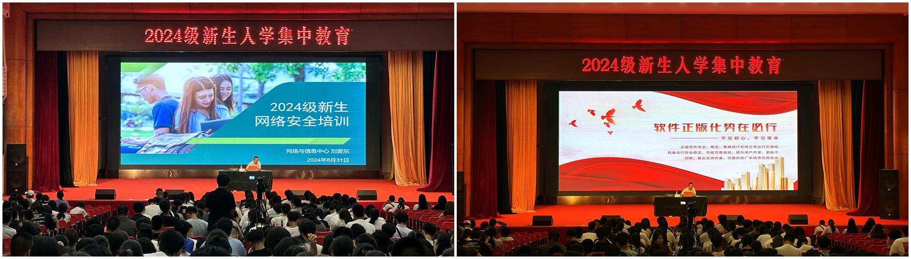 一次全面的网络信息安全教育。新生入学教育期间,网络与信息中心面向新生开展网络信息安全教育。从校园网络使用、网络安全意识、数据安全培训、软件正版化宣传四个方面进行讲解,通过种种真实案例,强调网络安全的重要性,提高同学们的网络安全意识,向同学们宣讲使用正版软件的必要性,提醒同学们从思想上提高警惕,在行动中积极落实,远离各类网络陷阱,保护好自身安全。