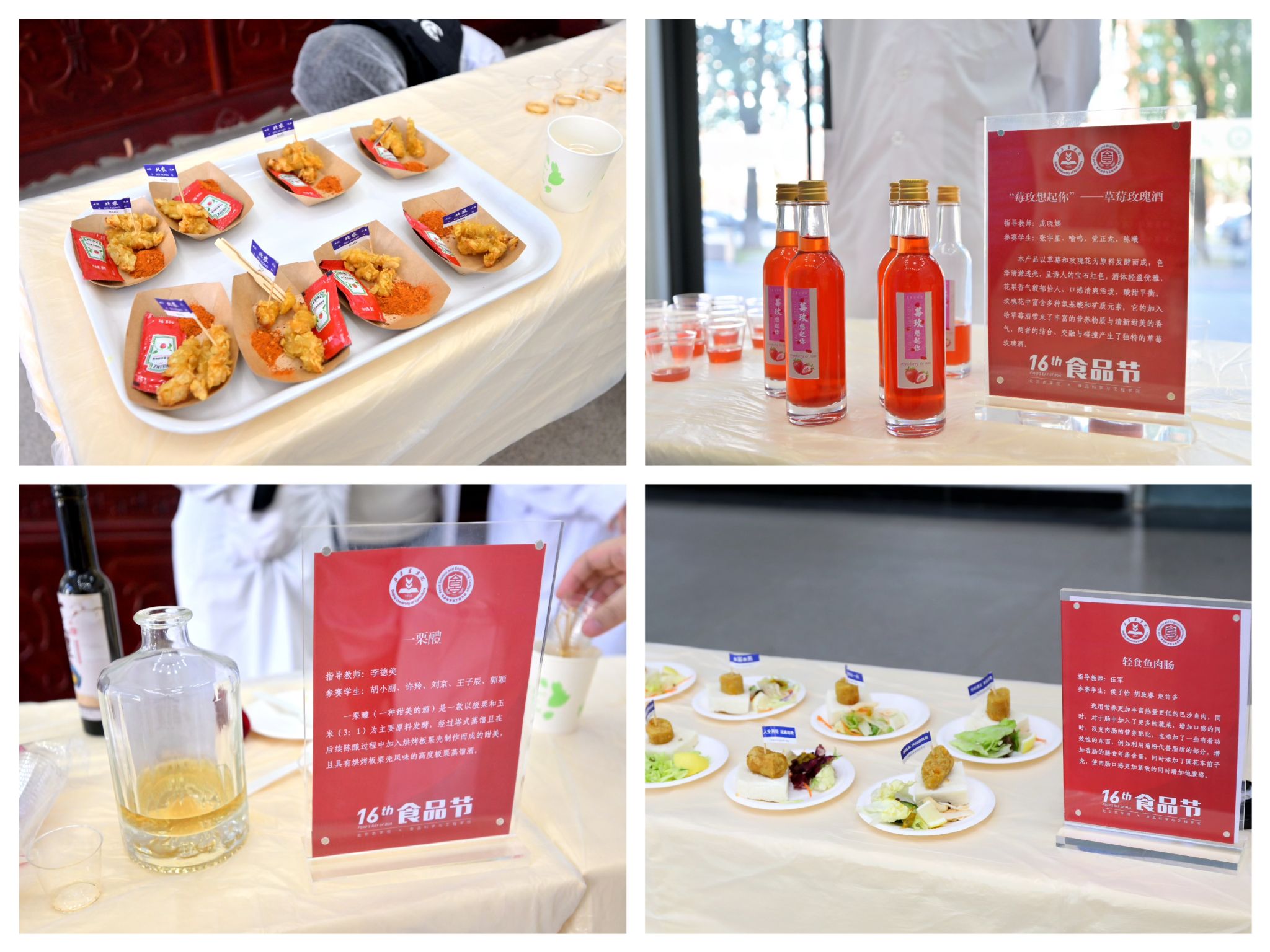 低糖低脂的桃桃芝士冻、营养健康的轻食鱼肉肠主打“健康牌”,草莓和玫瑰花发酵的果酒、板栗和玉米制作的板栗蒸馏酒亮出“创意牌”……11月14日,在以“直面新需求 洞见新未来”为主题的学校第十六届大学生食品节上,师生展出自主研发制作的11种美食和饮品,吸引众多校内外师生关注。校领导、兄弟院校和合作企业代表、学校相关职能处室负责人、食品科学与工程学院师生200余人参加活动。