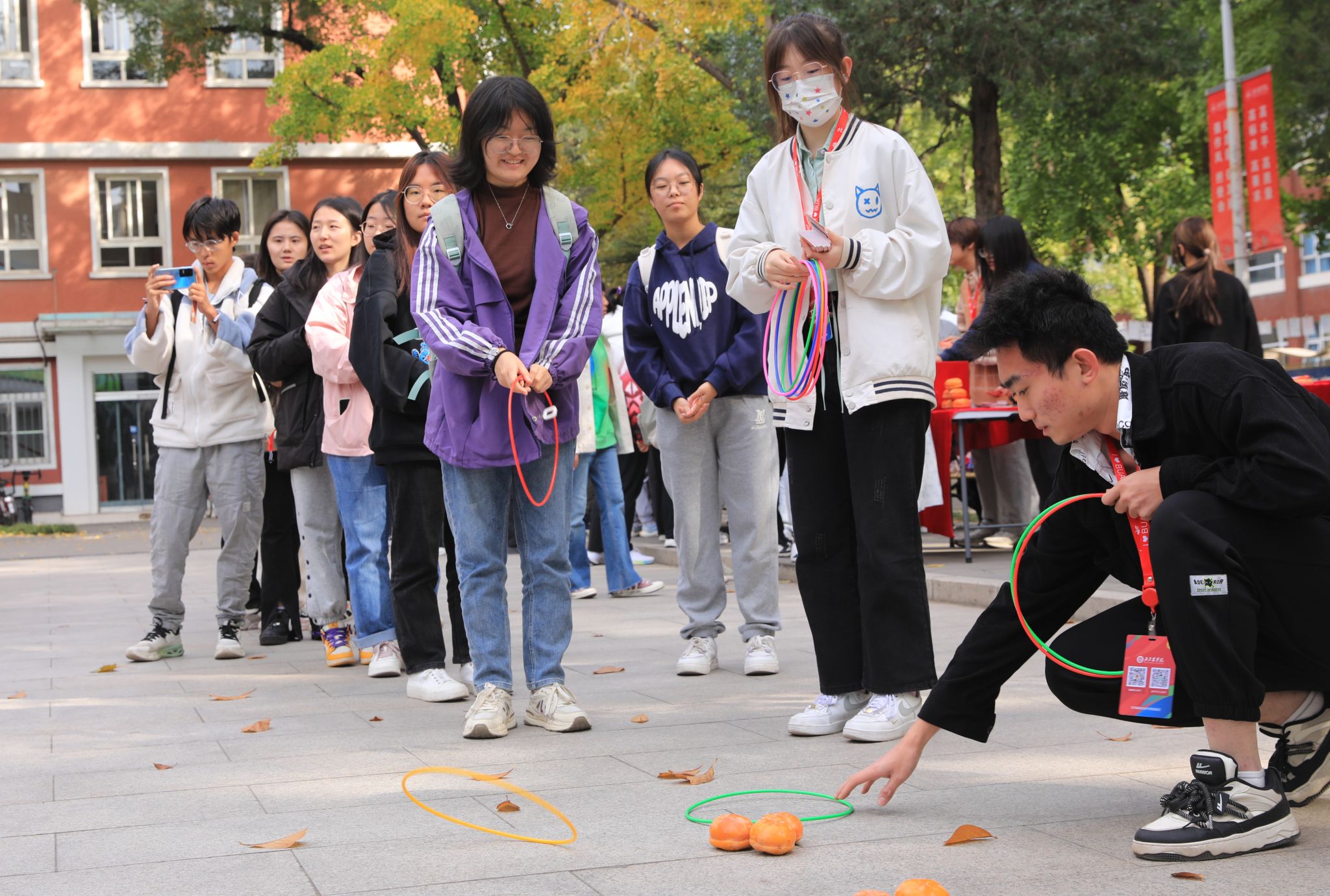 柿文化节设置了“表演集‘柿’、是‘柿’还是十、‘柿柿’如意、万‘柿’胜意、‘柿’上心头”等多个趣味活动。师生通过参与趣味答题、互动游戏等方式,了解了柿子的种植、生长、收获和加工等方面的知识,加深了对柿文化和历史的认识。参与每一项活动后,师生都可领到柿文化节专属兑换券,凭券可兑换新鲜的柿子、食品学院师生制作的美味柿子冰淇淋、学生原创的柿文化书签等奖品。