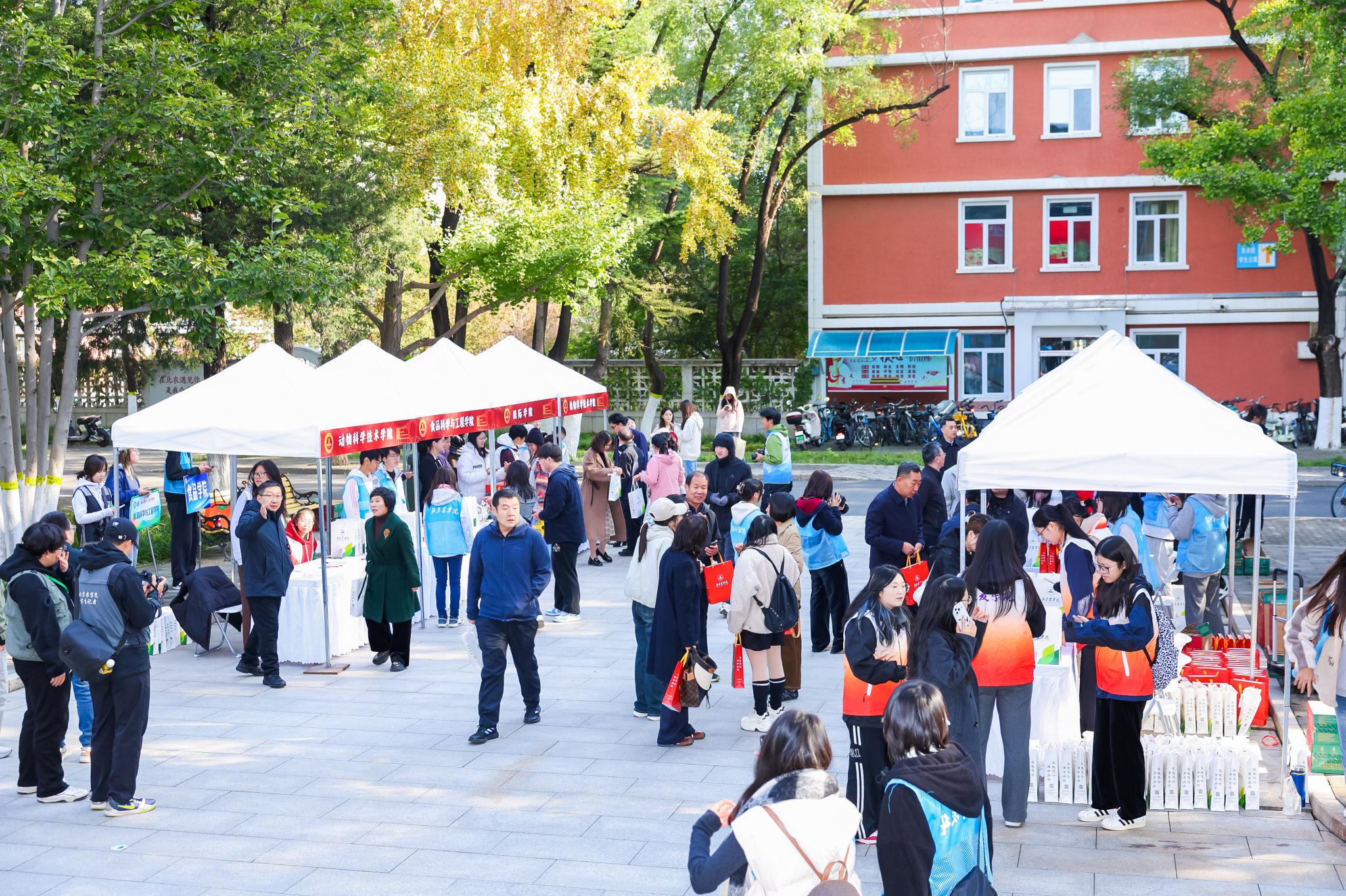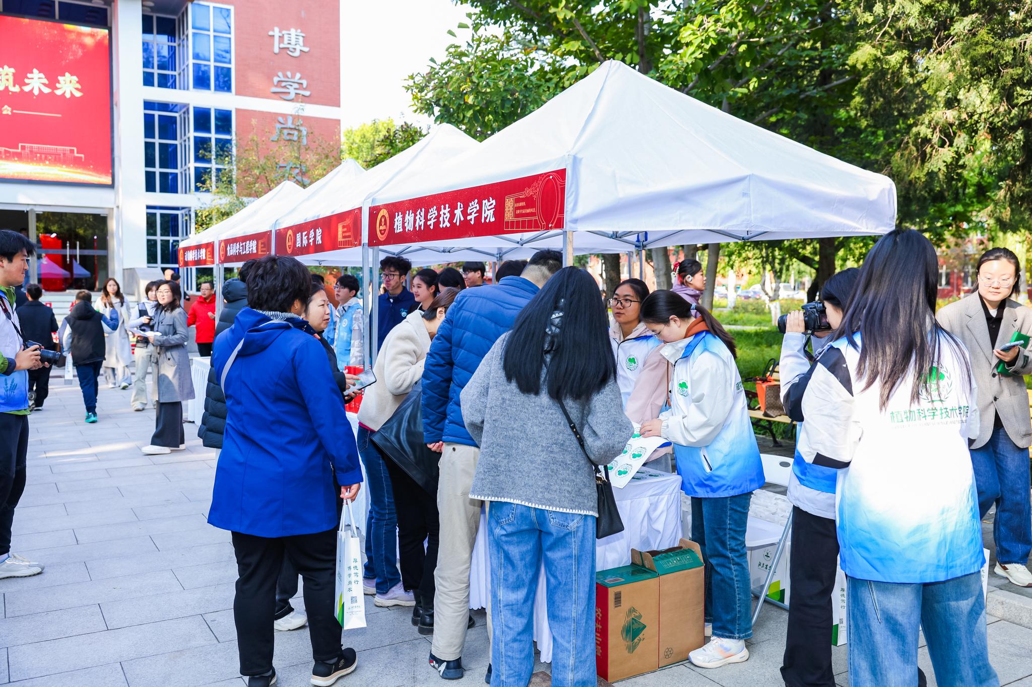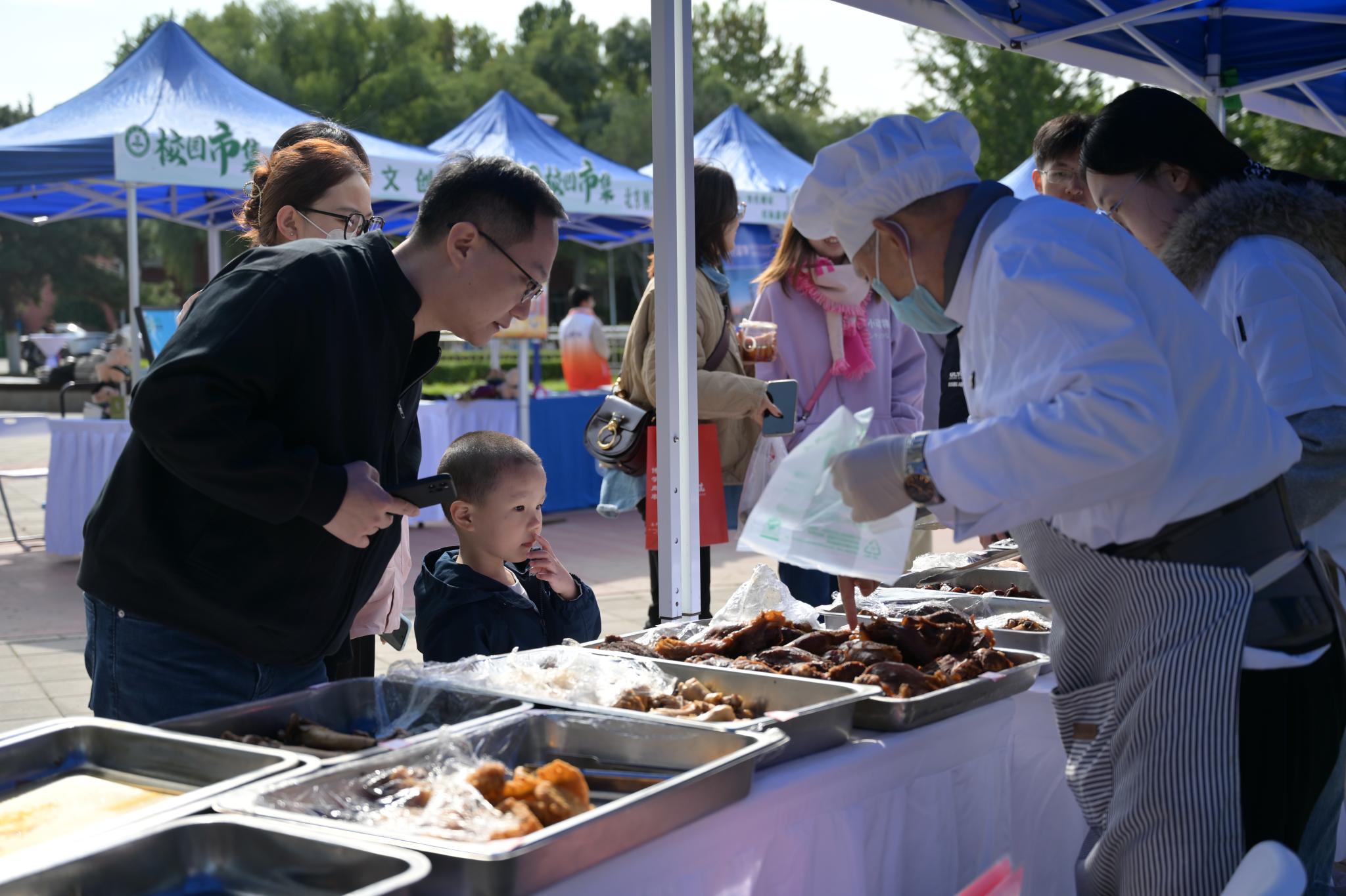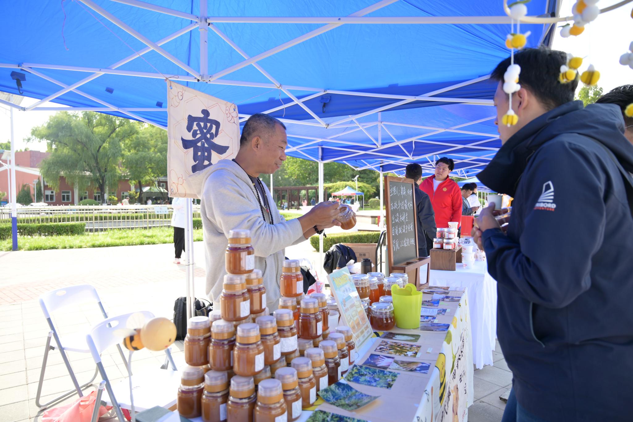 科技综合楼南广场举办的“食光邂逅 农商盛宴”校园市集也热闹非凡,40个特色摊位集中展出学校科研成果、校友企业及合作单位的优质农产品,现场欢声笑语不断。