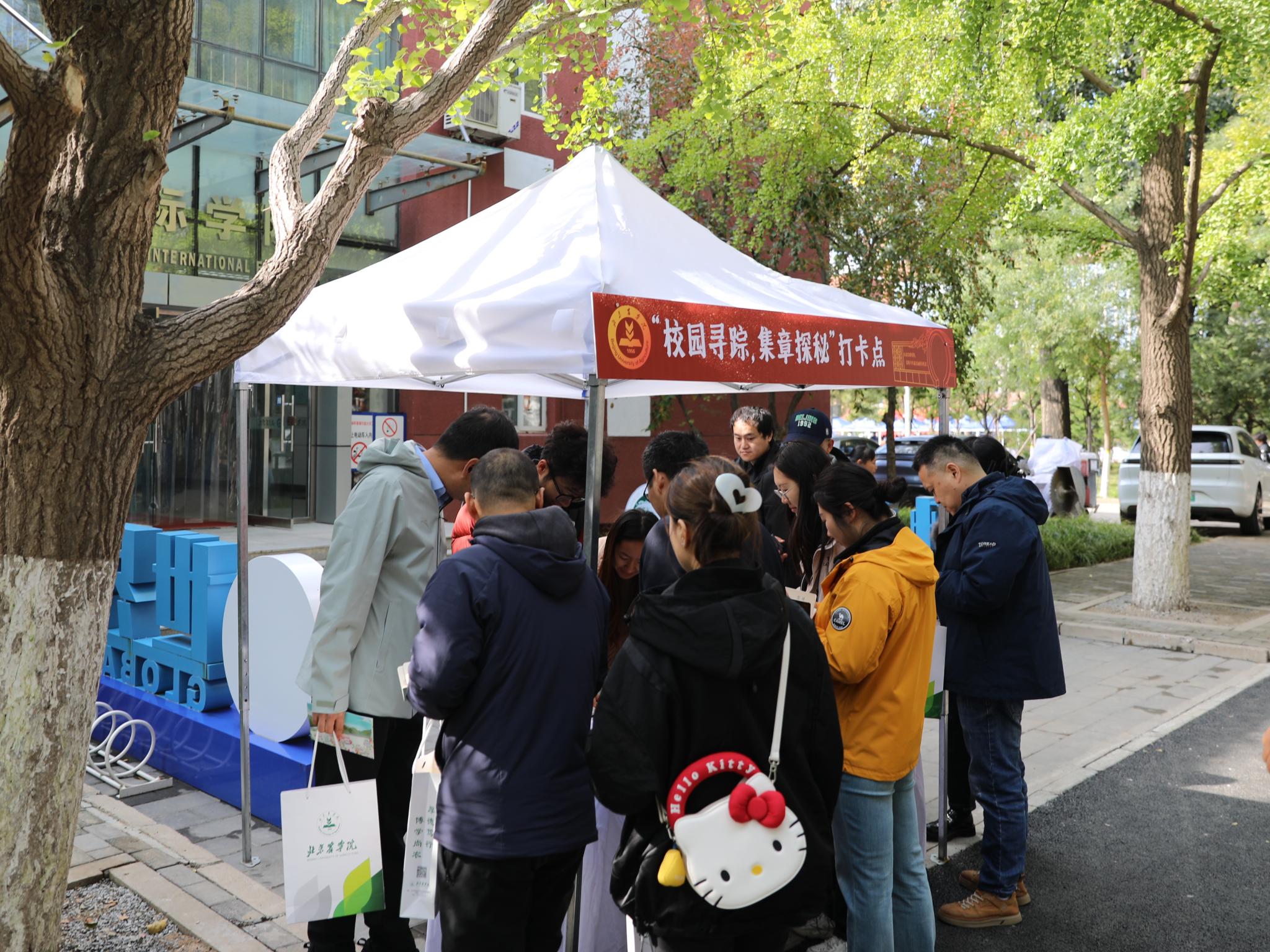 校友踊跃参与“校园寻踪 集章探秘”打卡活动。遍布校园的15个打卡点串联起图书馆、教学楼、宿舍楼等校园地标。校友们手持特制的纪念打卡册,或与昔日同窗结伴,或携家人孩子同行,兴致勃勃地踏上寻踪之旅,感受母校焕然一新的面貌。