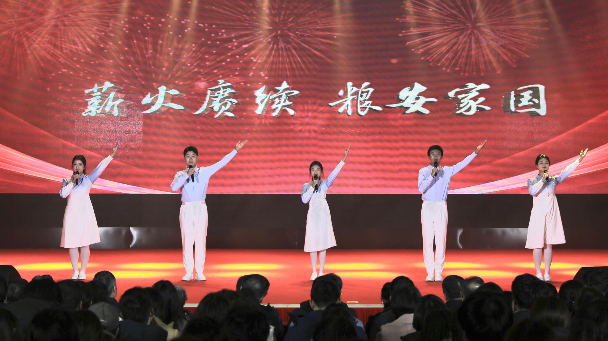 大学生艺术团和麦田戏剧社分别带来诗朗诵《薪火赓续粮安家国》、舞蹈《黎明中的万家灯火》、戏剧《如你所愿》等精彩节目,展现了学校五育并举的丰硕成果和北农学子深厚的强国兴农情怀。