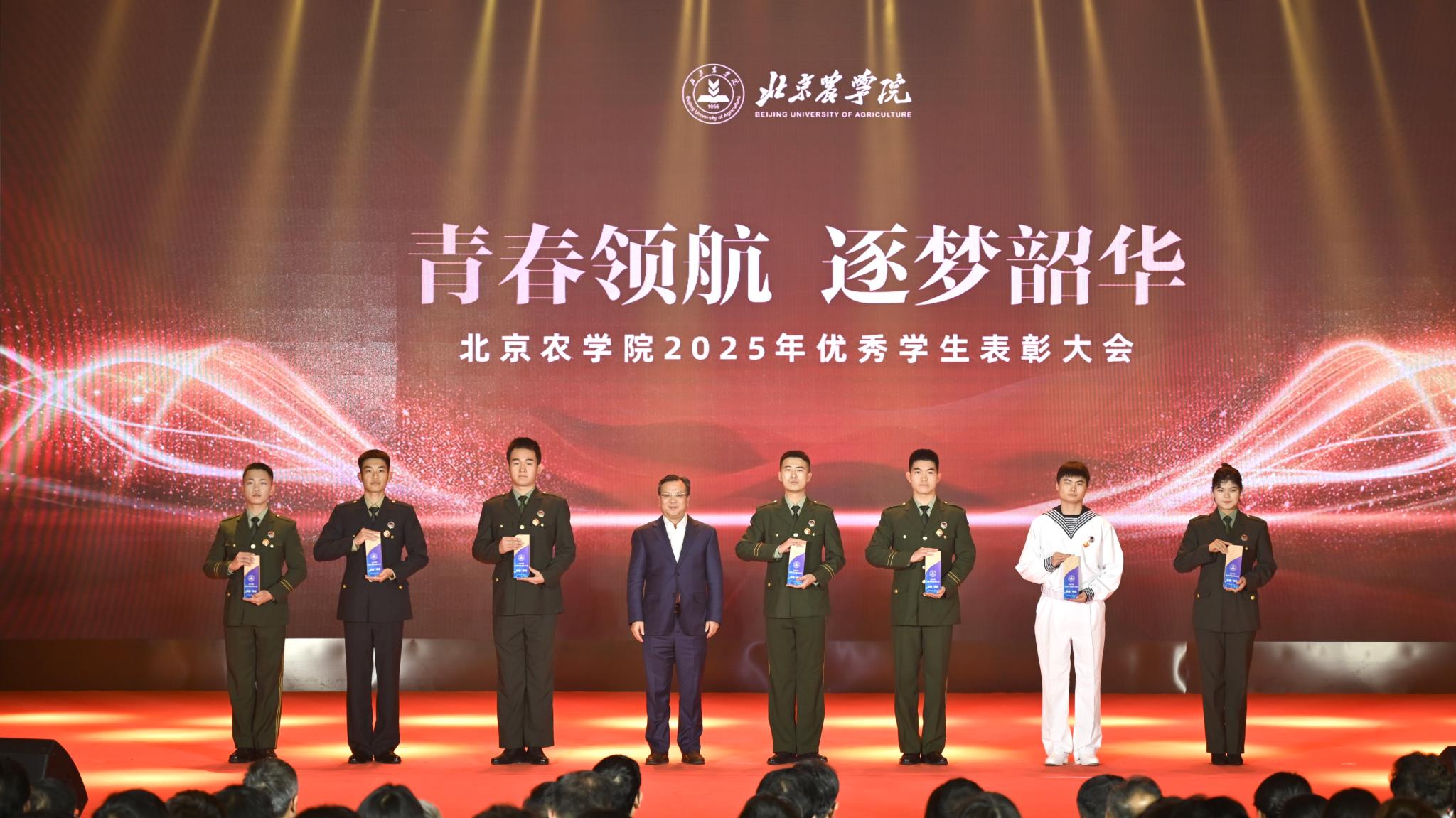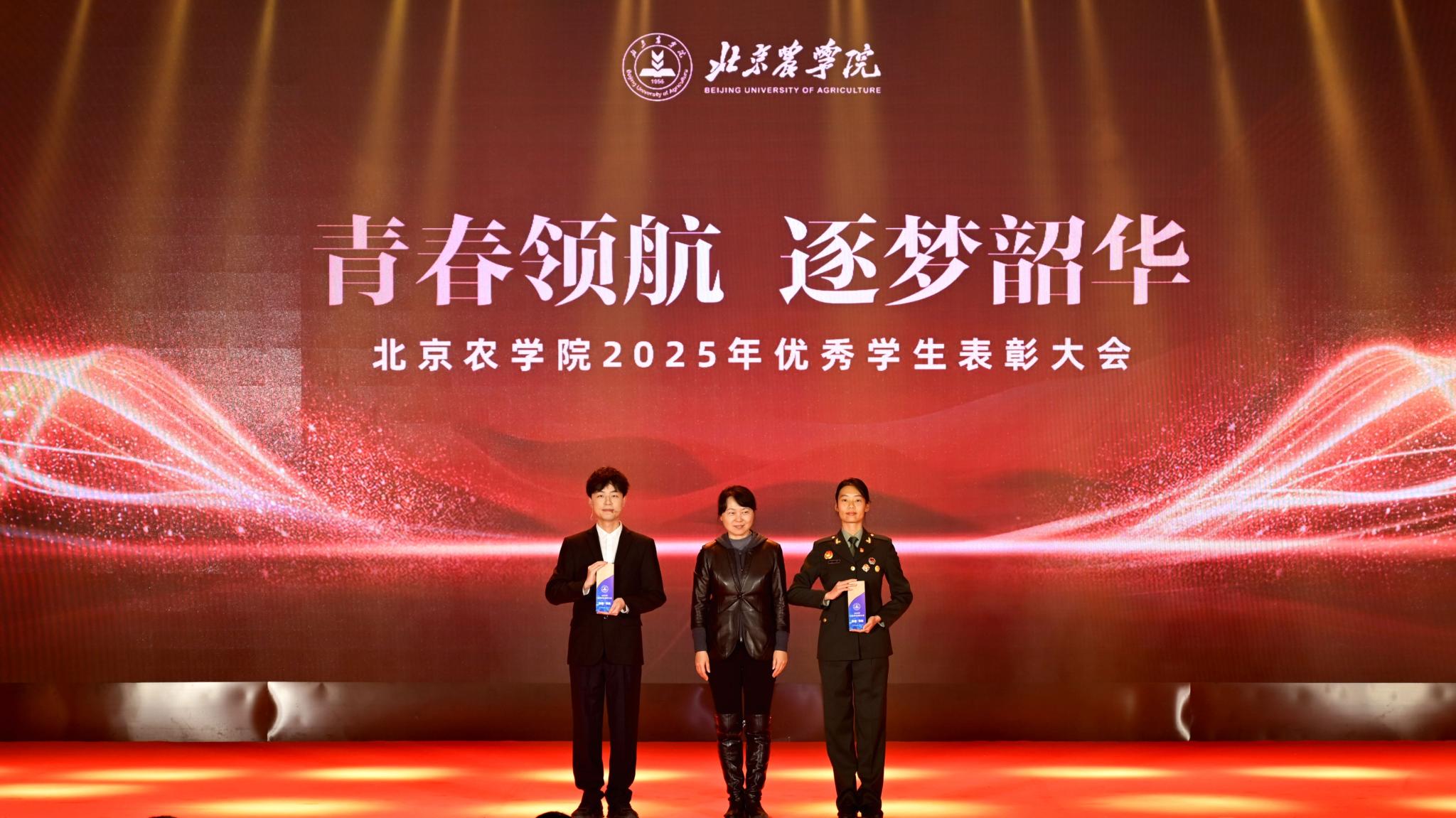 校领导分别为优秀毕业生代表、北京高校红色“1+1”示范活动获奖党支部、beat365中文官方网站国旗班、“四有”优秀士兵代表、纪念中国人民抗日战争暨世界反法西斯战争胜利80周年大会广场合唱团及民兵方队代表颁奖,表彰坚守信仰、爱国奉献的青春力量;为社会实践优秀团队与先进个人、心理健康类、体育类、文艺类获奖学生代表颁奖,表彰知行合一、全面发展的奋进榜样;为市级先进班集体、市级优秀学生干部、市级三好学生、国家奖学金获得者代表、“挑战杯”及各类科创竞赛获奖团队代表颁奖,表彰勤学善思、勇于创新的先进典型。
