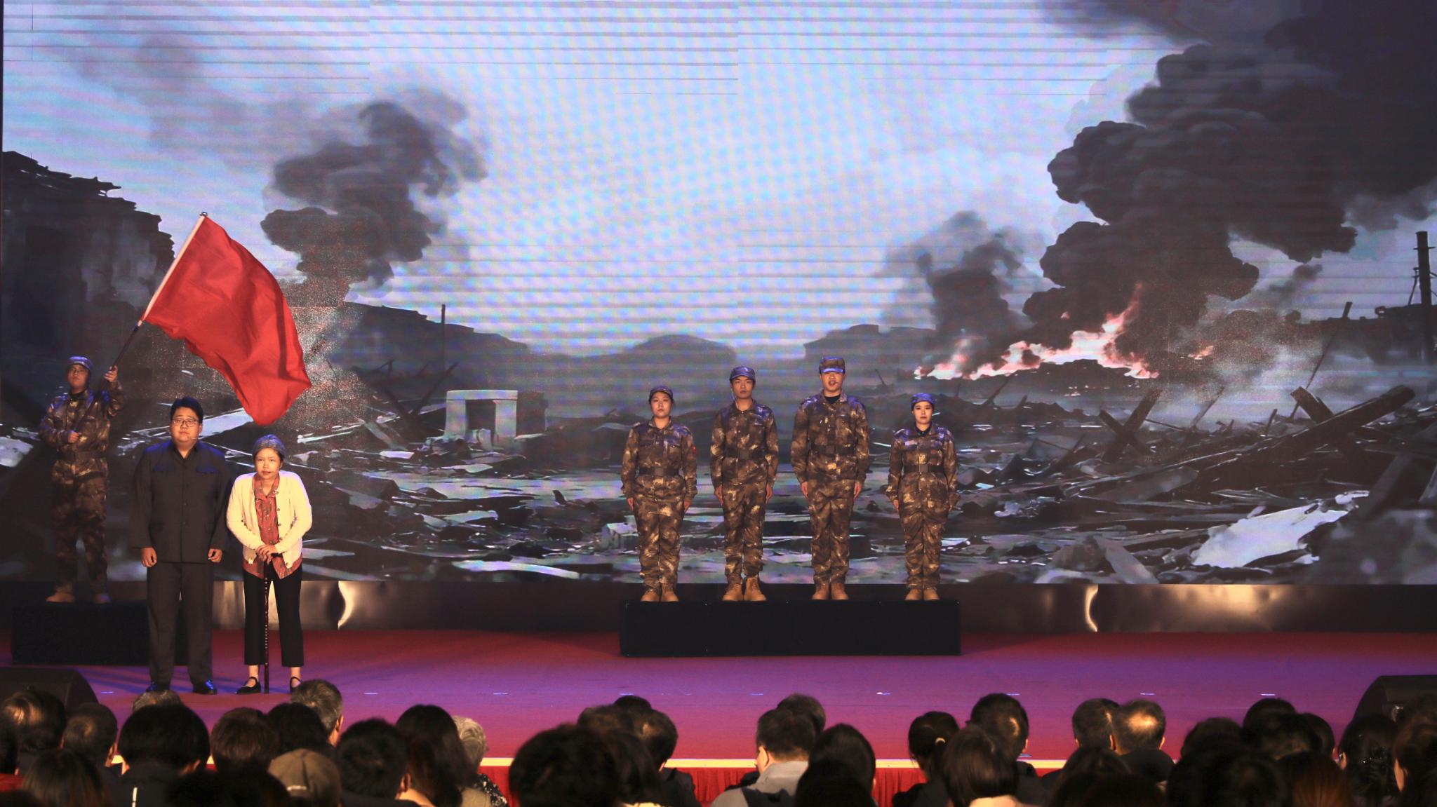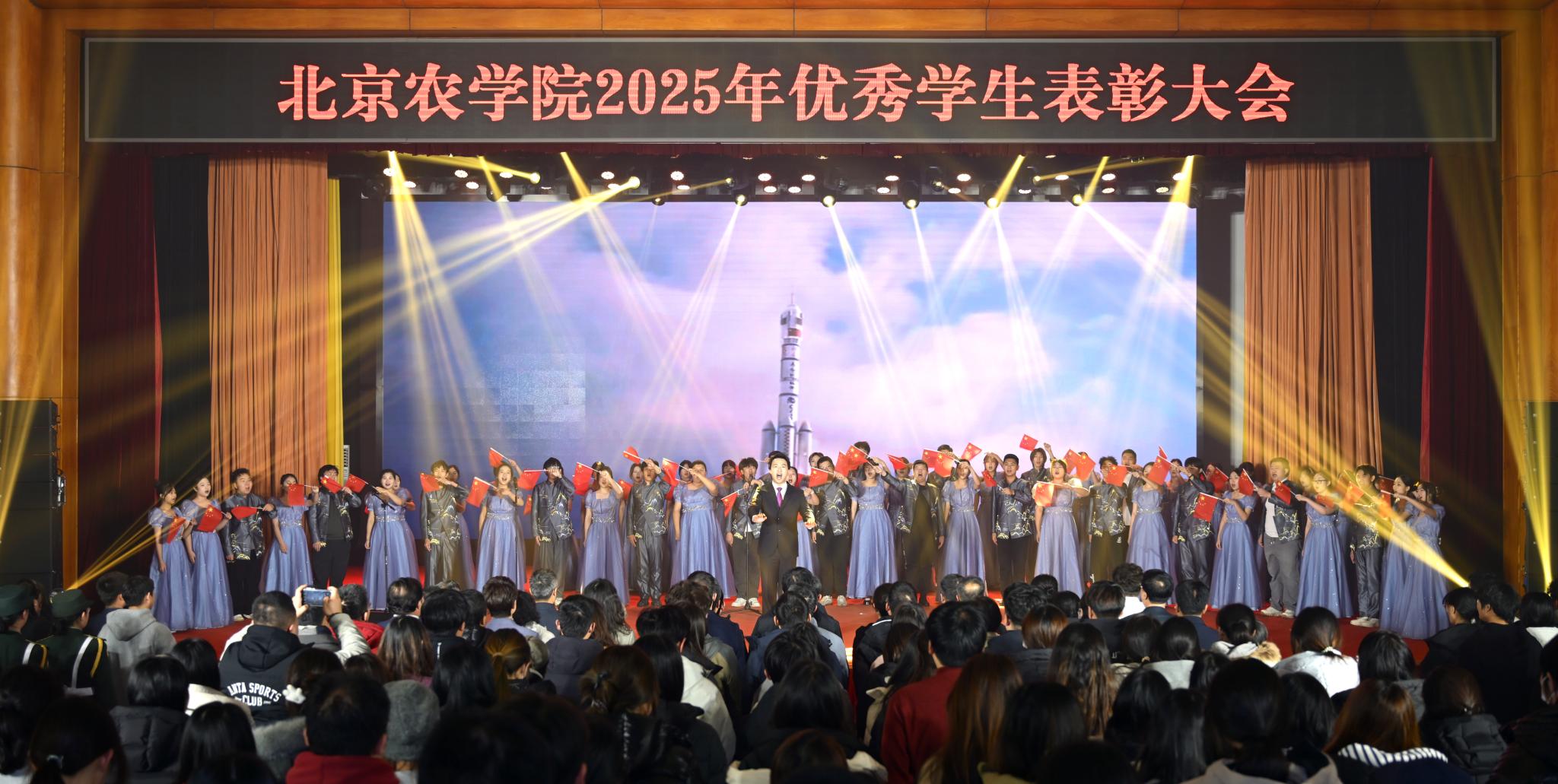 表彰大会在大学生合唱团《领航》《歌唱祖国》合唱声中落下帷幕。
