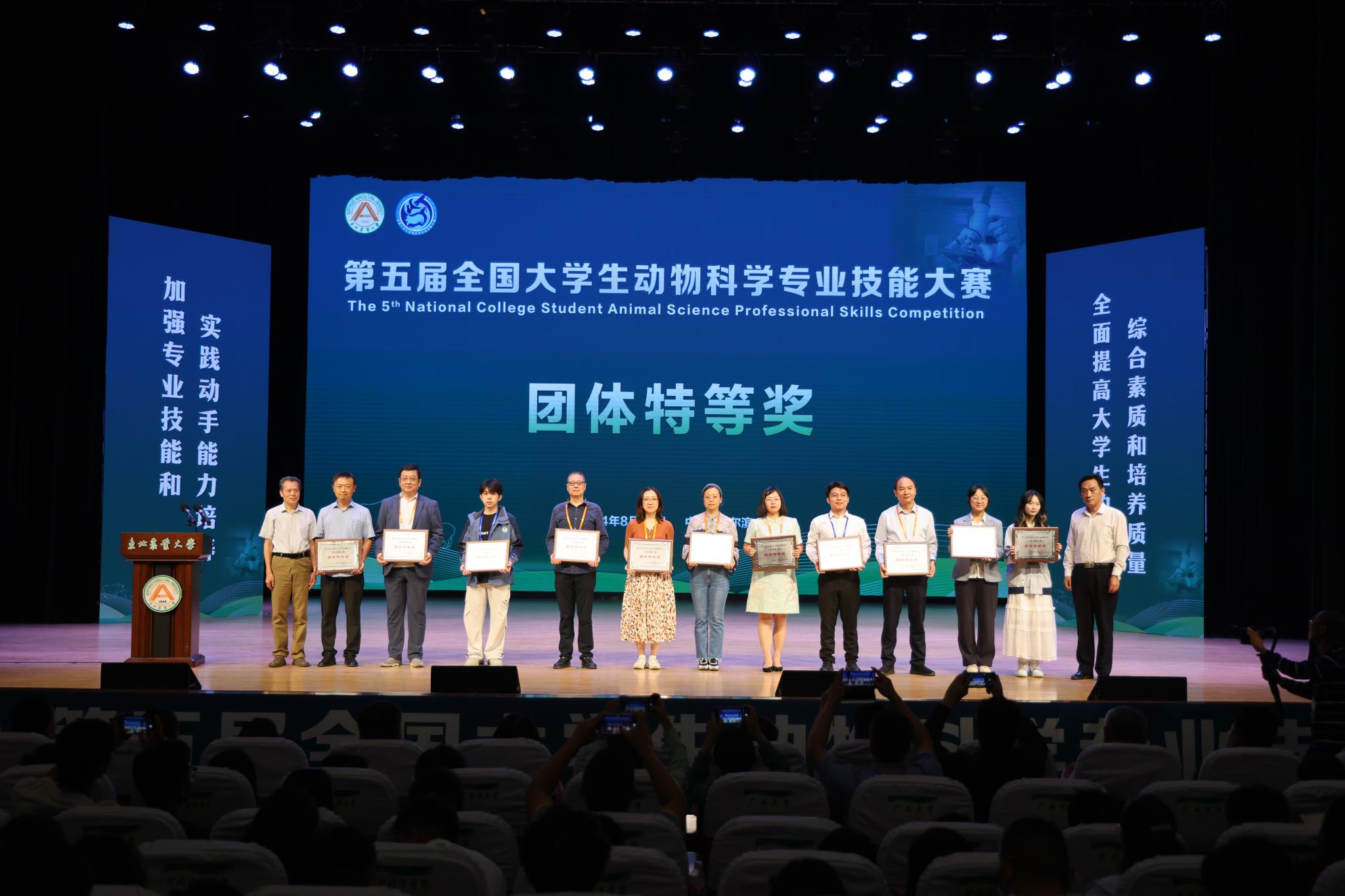 据悉,全国大学生动物科学专业技能大赛是由教育部高等学校动物生产类专业教学指导委员会指导、动物科学专业技能大赛联盟主办的动物科学专业领域最具影响力的全国性、权威性赛事。大赛旨在进一步推进高等院校动物科学专业实践教学改革和实践教学体系建设,加强专业技能和实践动手能力培养,全面提高大学生的综合素质和培养质量。本届比赛共产生团体特等奖11项、一等奖23项、二等奖41项;每个单项特等奖4项、一等奖6项、二等奖8项。