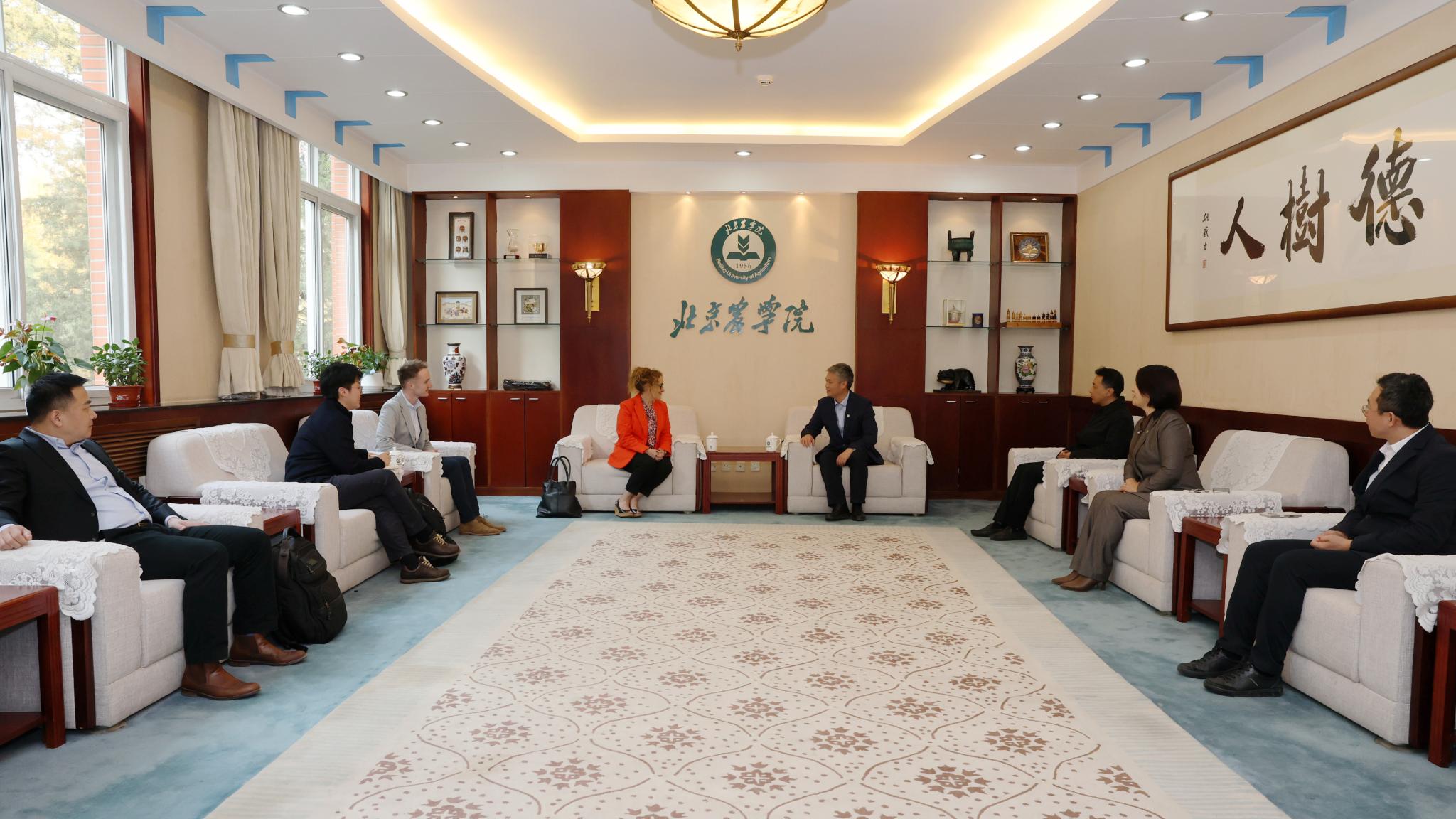 11月7日,英国赫尔大学商法政学院副院长Alison Price-Moir、国际招生主任Calum Porter、中国办公室招生负责人Vicky Zhang等一行访问beat365中文官方网站,beat365官网党委常委、副院长张劲柏会见来宾。