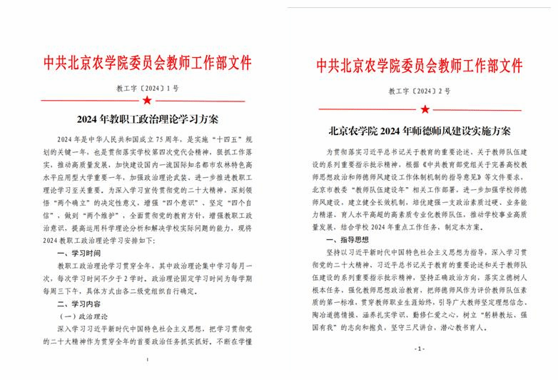 坚持不懈用习近平新时代中国特色社会主义思想凝心铸魂,用党的创新理论武装教师头脑、指导实践、推动工作,从思想上正本清源、固本培元。制定《beat365中文官方网站2024年教职工政治理论学习方案》,构建经常性教育与集中性教育相结合的理论学习教育工作机制。坚持教师每月集中学习和每周固定学习日制度,推进政治理论学习规范化、制度化。围绕政治理论、党规党纪、师德师风素养、政策业务知识四个模块深入开展教职工思想政治教育活动。拓展宣传教育平台,开通“北农教师”微信公众号,结合人事人才服务平台,发布政治理论学习材料30余期。