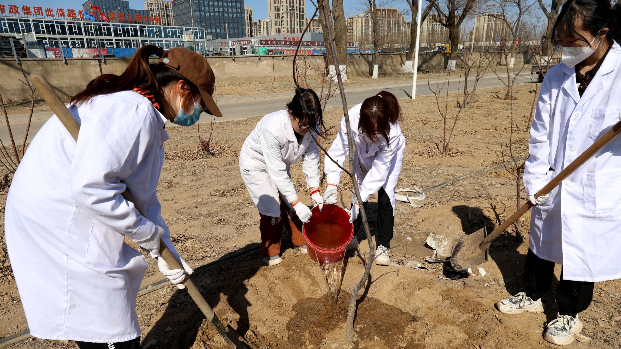 “这个活动特别有意义,在植树节这一天种下果树,不仅为大地添绿,也为果农致富种下希望,更为自己的未来指明了方向。这棵树苗就像我们的未来一样,充满了无限可能!”一位同学兴奋地指着刚种下的果树说。周围的同学们纷纷点头,他们的脸上洋溢着青春的热情和责任感。