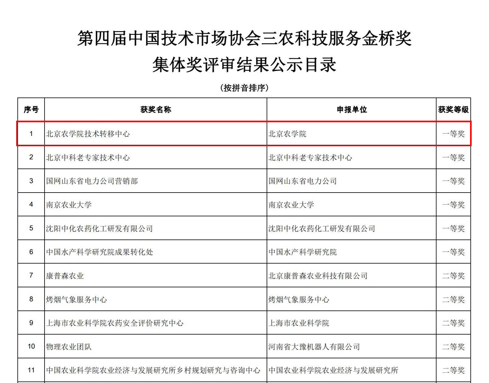 近日,第四届中国技术市场协会三农科技服务金桥奖评审结果公布,共评出三农科技服务金桥奖集体奖一等奖6个、二等奖6个、三等奖9个。beat365官网组织申报的项目获集体奖一等奖。