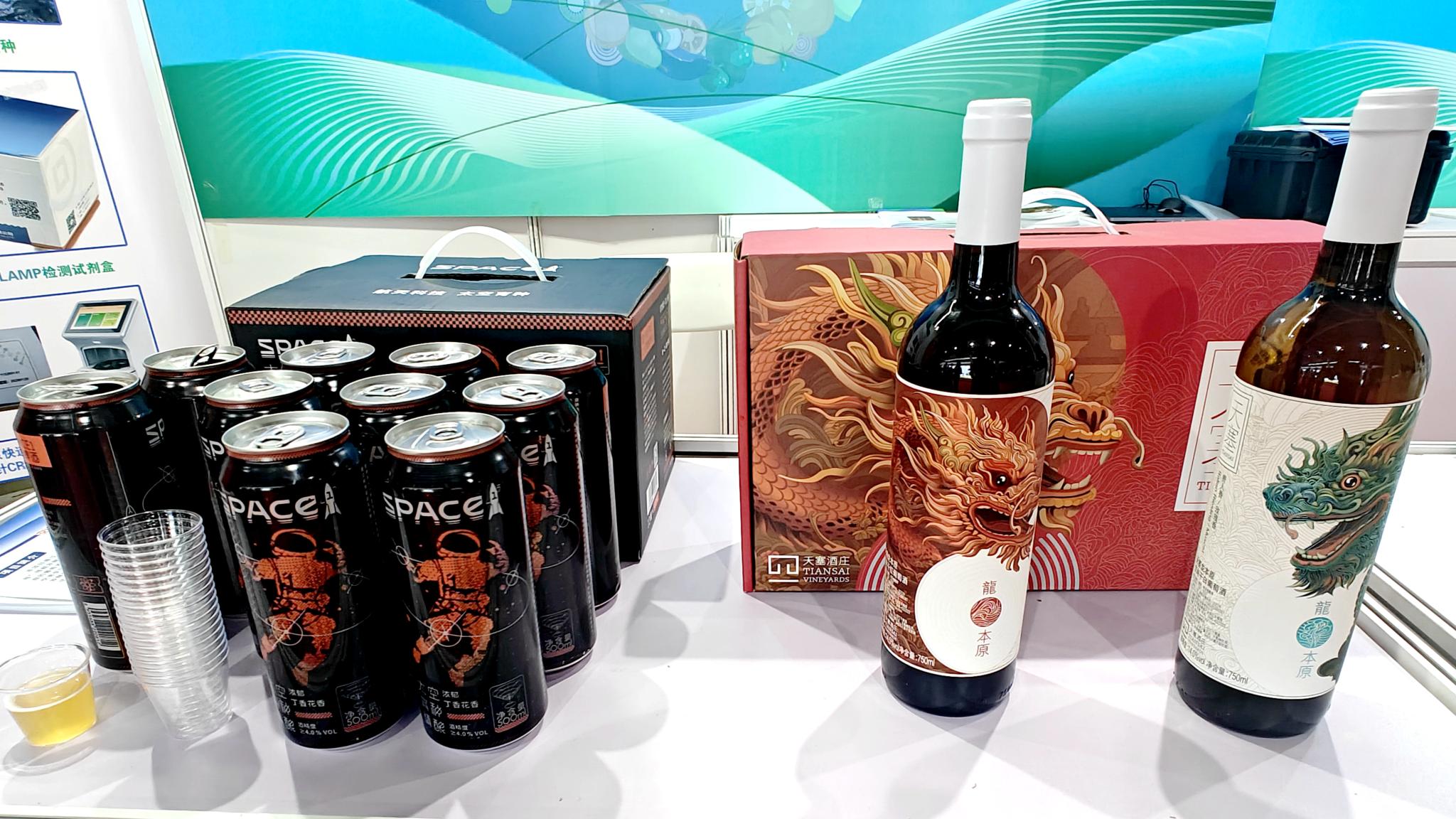 “这杯啤酒有菠萝、荔枝香!”—在“太空风味”展台,金色酒液伴随浓郁果香扑鼻而来。学校依托“天宫二号”“神舟十号”太空诱变平台,从110株突变株中筛得ST26-13酿酒酵母,己酸乙酯含量提升2倍以上,发酵周期缩短1/5。葡萄酒创新团队展示了首创的中国生肖葡萄酒,团队依托“一带一路”国际葡萄与葡萄酒科技创新院,在新疆戈壁建成10万亩酿酒葡萄示范区,累计获国际大奖500余项。