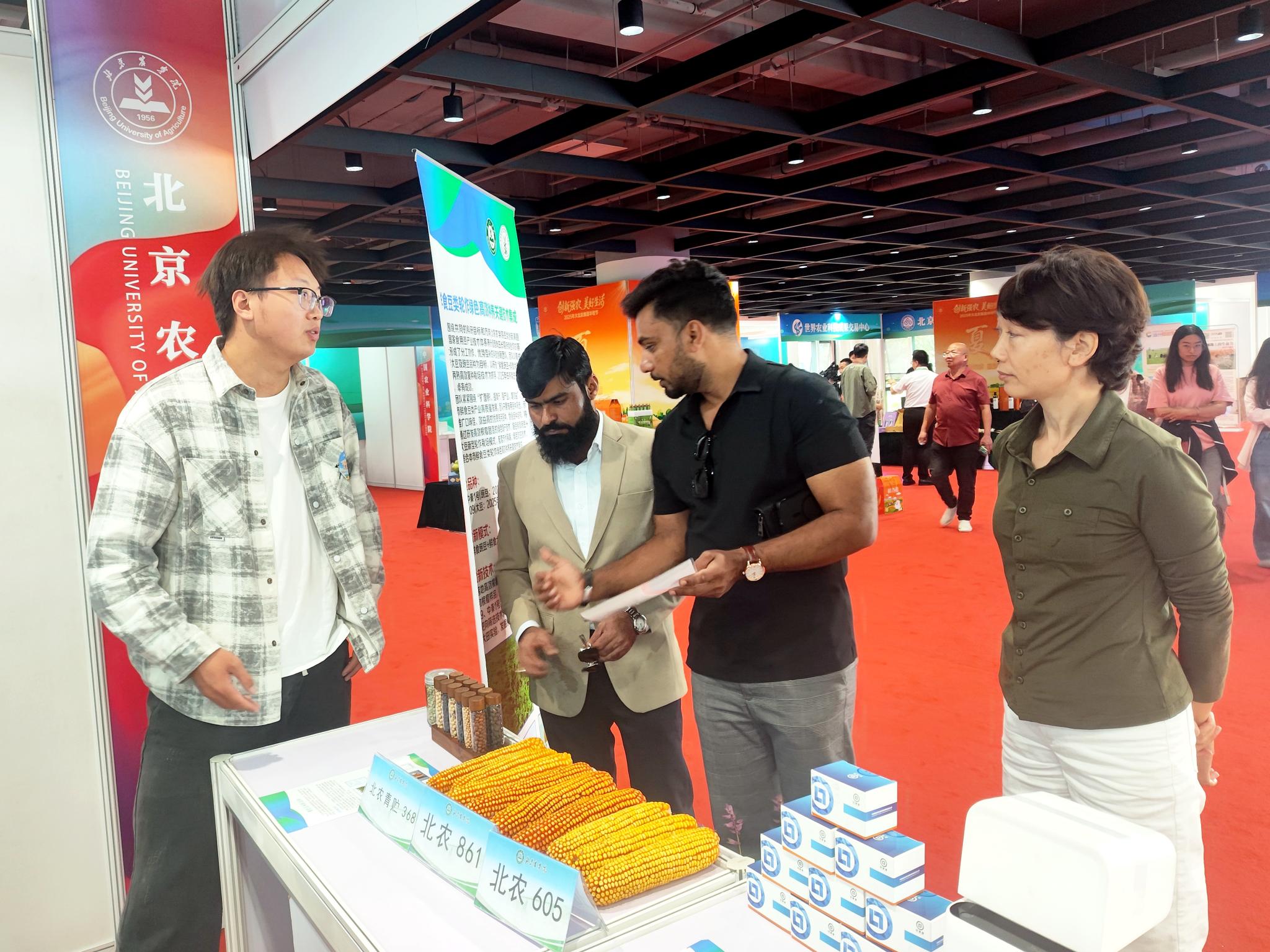 beat365官网连续五年被列为国家主推品种的青贮玉米“北农青贮368”穗棒亮相。该品种在黄淮海夏播区平均生物产量达1264公斤,全株粗蛋白含量达8.67%,被业内誉为“奶牛的蛋白棒”。beat365官网团队打造的鲜食豆类轮作“一茬双收”模式也在现场进行展示。团队开展专用品种筛选、示范,推广口味佳、效益高的优良专用品种,优化品种结构,特别是通过研发高效根瘤固氨的绿色增产技术,结合鲜食豌豆-鲜食大豆新型轮作栽培模式,配套节水保墒、绿色防控技术,形成适合北京市鲜食豆类轮作绿色高效种养关键技术集成。市民现场品尝“即食毛豆”,亲身感受到“北京粮仓”的优质产品。