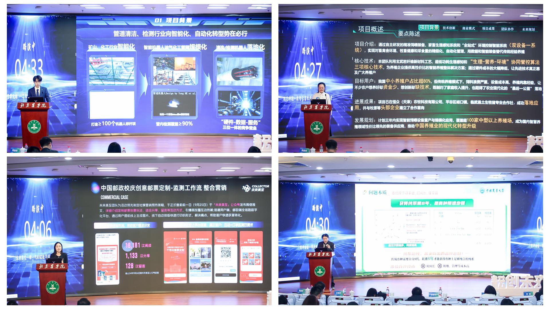 大赛采用“5分钟项目路演+3分钟专家问答”评审机制,参赛项目涵盖智慧育种、生态环保、智能装备、文化创意等多个领域。15支参赛团队依次登台,以图文并茂的精彩演示,生动诠释了技术创新的实用价值与应用前景。评委从创新性、应用前景、商业化路径等多维度进行综合考评,在总结点评中肯定了项目的原创性与实践意义,同时就技术优化、市场对接等提出建设性意见。