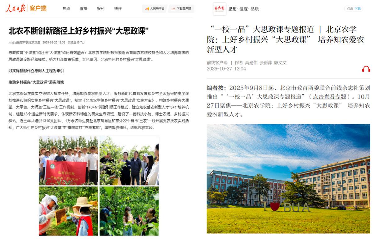 发布《beat365中文官方网站乡村振兴“大思政课”建设实施方案》,完成年度10项重点任务。组织521支团队、3000余名师生奔赴祖国各地乡村振兴一线开展支农扶农社会实践,3支乡村振兴行动团队获市级立项,22支实践团队获批首都高校“千人百村”大学生暑期社会实践团队,获批数量居首都高校首位。相关宣讲案例获评北京市“宣讲家杯”优秀成果,成功获批首批北京市大中小学思想政治教育一体化区域创新示范联合体项目、北京市大中小学思政“实景课堂”优秀案例;新华社、人民日报、前线、北京日报等媒体广泛宣传报道学校乡村振兴“大思政课”开展情况。
