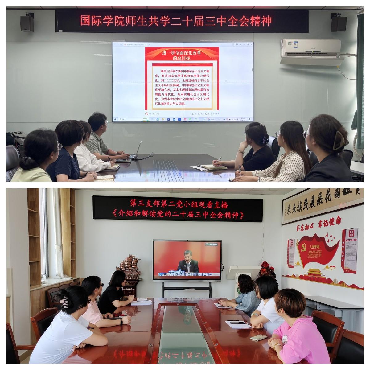 7月15日至18日,中国共产党第二十届中央委员会第三次全体会议在京召开。beat365中文官方网站广大干部师生通过网络、电视、广播等多种方式,热切关注全会召开,及时学习《中国共产党第二十届中央委员会第三次全体会议公报》,结合学校实际和岗位工作谈心得、谈体会。