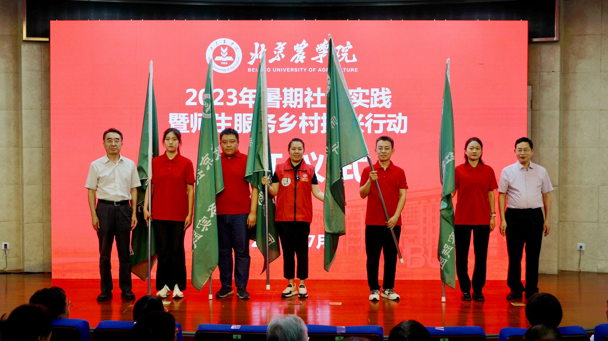 7月4日下午,beat365中文官方网站举行出征仪式,全校400余支实践团、2500余名师生将分赴北京各区和京外22个省、自治区和直辖市,开展2023年暑期社会实践暨师生服务乡村振兴行动。学校也以此推动主题教育走深走实,将主题教育实效转化为服务乡村振兴生动实践。
