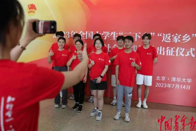 7月14日,2023年全国大学生“三下乡”“返家乡”社会实践启动周系列活动在北京清华大学拉开帷幕。据悉,2023年全国大学生“三下乡”“返家乡”社会实践活动聚焦组织学生在实践中深入学习宣传习近平新时代中国特色社会主义思想,全面贯彻落实党的二十大精神,力求在影响力、覆盖面和育人成效方面取得更多实打实的工作成果。继北京站之后,后续还将在内蒙古、甘肃、云南等多个省市接力举办社会实践启动周地方站点活动。中青报·中青网记者 陈剑/摄