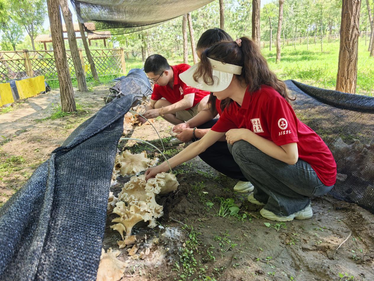 植物科学技术学院园艺教师第一党支部“菌林共舞 绿动未来”暑期实践团暑期多次赴昌平区、海淀区开展暑期科技服务实践活动,为当地林下食用菌种植提供专业技术指导。