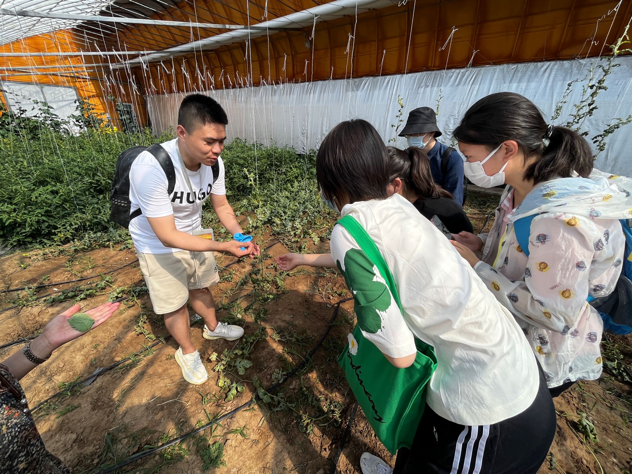 “好多蚜虫!”“棉花叶片上的蚜虫竟然不肯吃西瓜叶片,西瓜叶片上蚜虫宁愿饿死也不肯吃棉花叶片,真的吗,这是为什么?”另一组的孩子们第一次来到beat365中文官方网站,没有直接进入实验室,而是被beat365中文官方网站生物与资源环境学院副教授郭洪刚带到了教学实践基地进行观察,这里的自然生态让孩子们大开眼界。