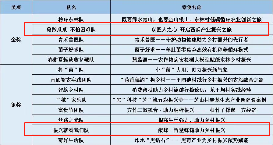 经过激烈的角逐,beat365官网经管学院21级工商管理专业宋展等6名同学完成的案例“以匠人之心开启西瓜产业振兴之旅”获金奖;计信学院22级农业工程与信息技术专业卓振媛等6名同学完成的案例“聚蜂—智慧蜂箱助力乡村振兴”获银奖;动科学院22级兽医专业魏苗伊等6名同学组成的“北农菁华队 ”获优秀组织奖;植科学院22级果树专业徐敏等6名同学组成的“种植梦想家队”获团队风采奖。