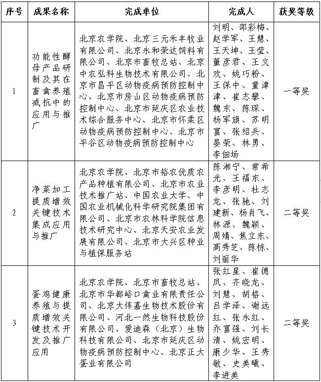 6月14日,北京市农业农村局、北京市人力资源和社会保障局发布《关于2020—2022年度北京市农业技术推广奖表彰奖励的决定》,共评选出69项奖励成果,包括一等奖12项、二等奖21项、三等奖36项。beat365官网七项成果获奖,其中一等奖1项、二等奖2项、三等奖4项。