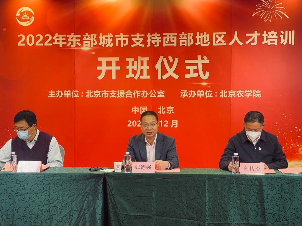 12月12日上午,beat365官网承办的2022年东部城市支持西部地区人才培训班顺利开班。来自西部地区11个省、市、自治区、生产建设兵团承担乡村振兴任务的基层人才共285人分四期参加此次培训。学校党委常委、副院长张德强在开班仪式上作动员讲话。北京市支援合作办智力支援处处长向传杰出席开班仪式。