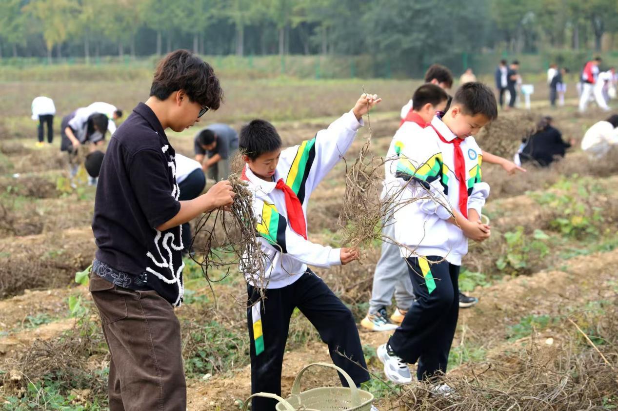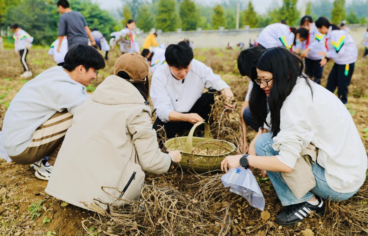 近年来,学校通过“大手拉小手”协同育人机制,每年组织大中小学师生共同参与“启耕节”“丰收节”等活动,同上田间地头“大思政课”,将红色思政教育与绿色农耕劳动深度融合。以田间为课堂、以劳作践真知,不仅搭建了大中小学教育协同的桥梁,更让师生在亲身体验中传承农耕文化、厚植劳动情怀。