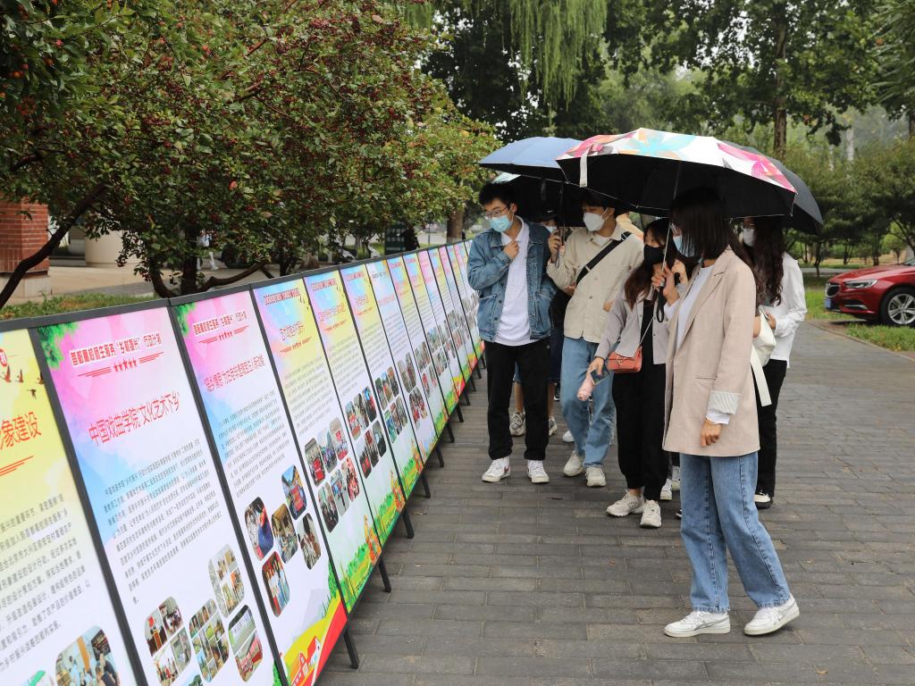 在成果展览现场,同学们仔细观看展览、深入了解首都高校百支师生实践团队用脚步丈量祖国大地、用内心感应时代脉搏的实际行动,了解他们深入基层一线、投身乡村振兴伟大实践。“看到实践团奔赴全国22个省、市、自治区的119个乡村,以文化兴农、科技支农、卫生惠农、智慧助农并取得显著成果,我倍受鼓舞,今后我也要投身到服务乡村振兴的生动实践中,到‘三农’一线了解农民的需求,为乡村振兴贡献自己的力量。”beat365官网一名大一新生激动地说。