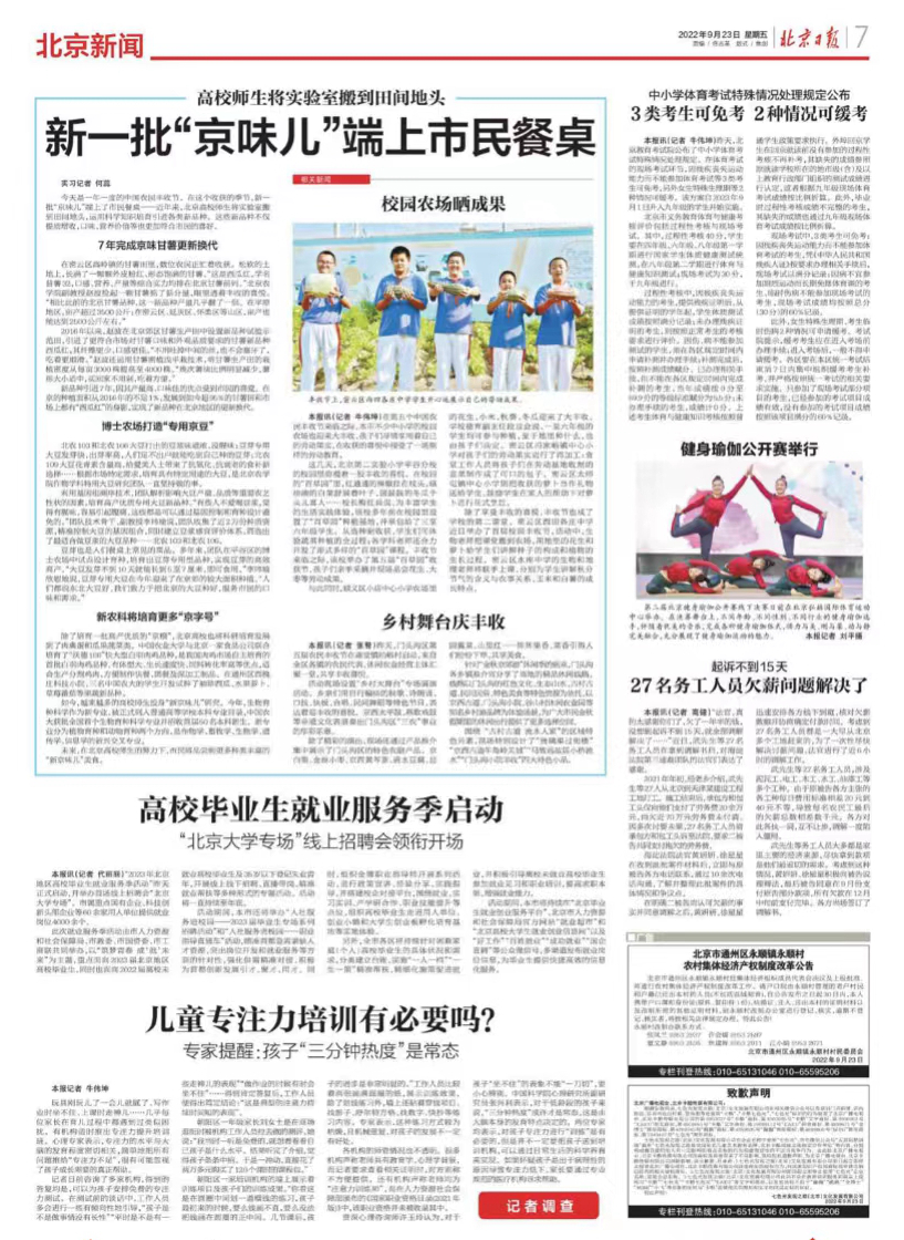 今天是一年一度的中国农民丰收节。在这个收获的季节,新一批“京味儿”端上了市民餐桌——近年来,北京高校师生将实验室搬到田间地头,运用科学知识培育引进各类新品种。这些新品种不仅提质增收,口味、营养价值等也更加符合市民的喜好。