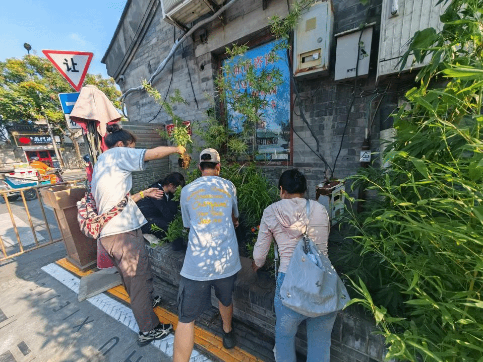 国庆前夕,园林学院李金苹老师带领团队在北京大栅栏街道及其下辖的杨梅竹斜街、西河沿街、琉璃厂东街等地开展了一系列胡同美化项目。