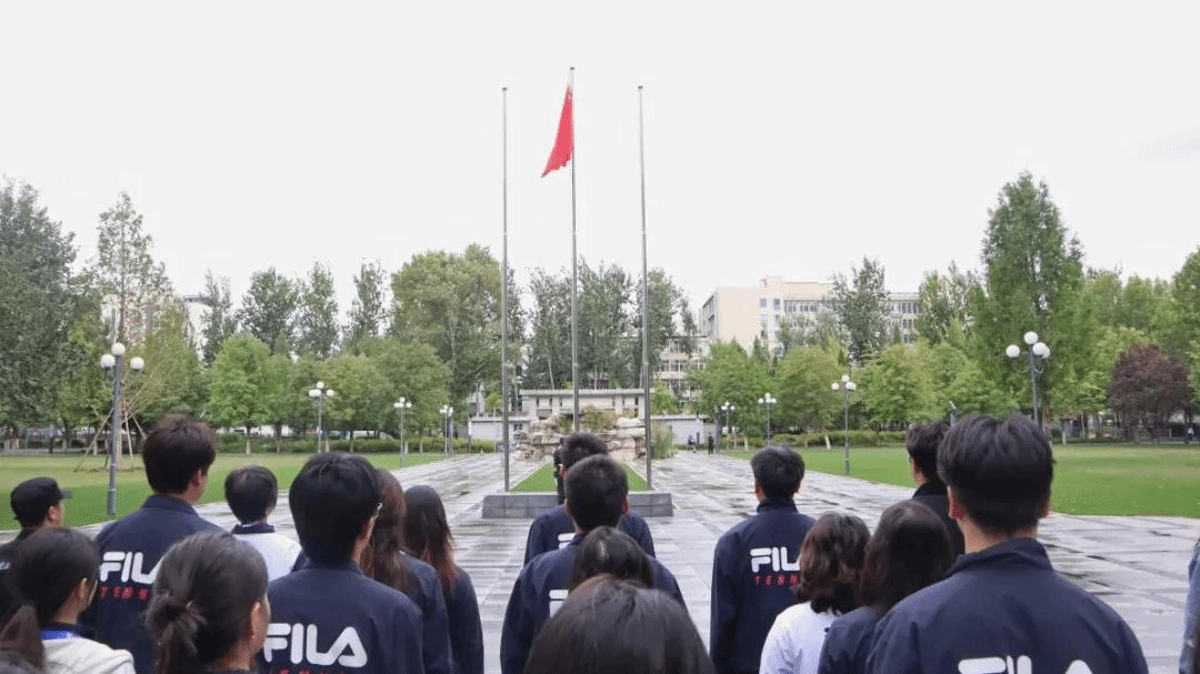 早上8时,伴随着雄壮的国歌,五星红旗冉冉升起。师生肃立静默,向为中国人民解放事业和共和国建设事业英勇献身的烈士默哀。