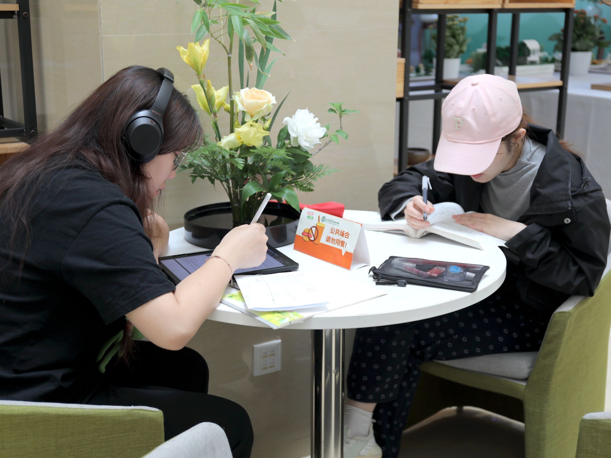 图书馆内伏案苦读的身影