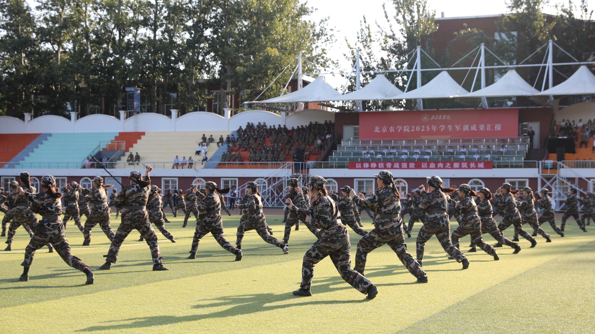 参训学生进行了分列式展示和特色科目汇报表演。同学们口号响亮、步伐铿锵、队列整齐,充分展现了北农学子昂扬向上的精神风貌和丰硕的军训成果,赢得了现场师生的阵阵掌声。