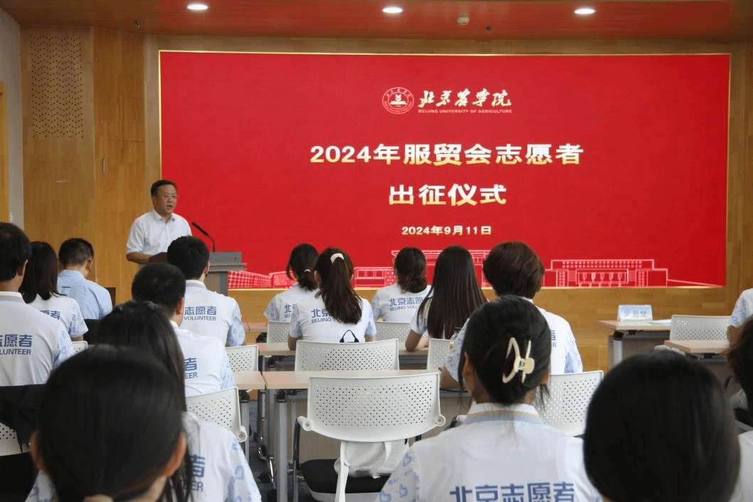 党委常委、纪委书记吴君楚在出征仪式上指出,承担服贸会的志愿服务保障工作是提升beat365官网社会服务力的举措,也是落实学校第四次党代会精神的生动体现。他勉励同学们增强大局意识,发扬奉献精神,履行好岗位职责,想在前、干在前、冲在前,做讲政治、能吃苦、有水平的北农志愿者,为北农志愿者、首都志愿者的“金名片”增添新的光彩。
