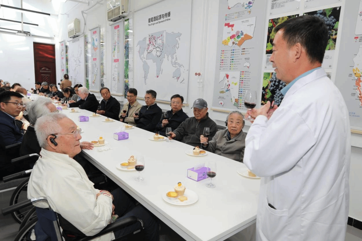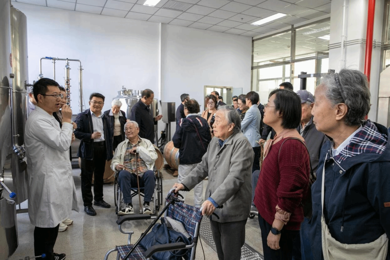老同志们来到学校食品加工与食品安全北京市实验教学示范中心,现场观摩酿酒工程实验室、葡萄酒中试车间以及贮藏保鲜推广车间的运行情况,进行了葡萄酒品鉴,深入了解学校人才培养和专业建设的成果。