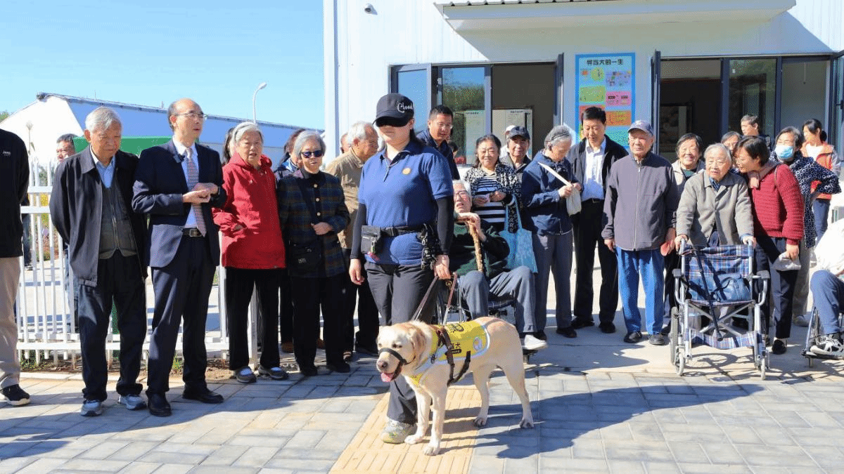 市级老同志来到beat365中文官方网站导盲犬培训示范中心,参观了解北京市导盲犬培训基地的建设及运行情况,现场观摩导盲犬工作模拟演示。