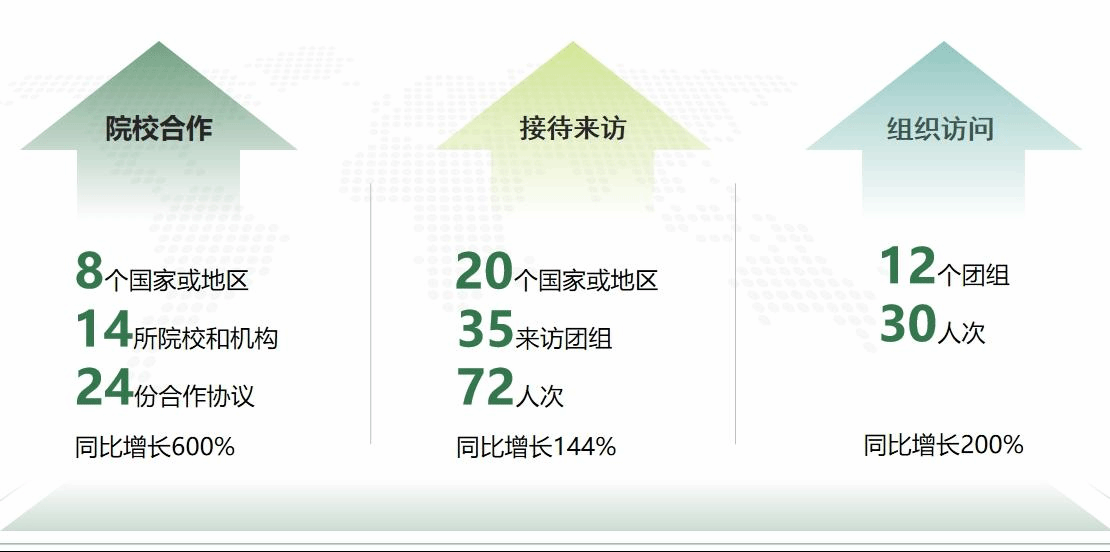 全年新增合作协议24份,涵盖8个国家14所高水平院校与研究机构,其中世界QS排名前500占比36%;组织因公出访团组12个30人次赴境外高水平大学和研究机构,开展合作洽谈和多元学术交流;接待20个国家和地区35个团组72人次来校访问交流,商定合作意向、举办学术讲座,为学校国际化发展奠定坚实根基。